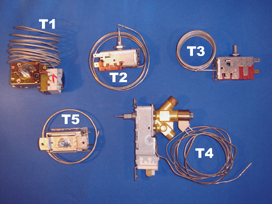 Les thermostats servent à réguler le froid à l'intérieur d'un réfrigérateur. Ils sont soit électriques, soit à gaz, soit mixtes. Ce ne sont ni plus ni moins que des interrupteurs qui coupent le courant ou réduisent le débit de gaz en fonction de la température demandée.